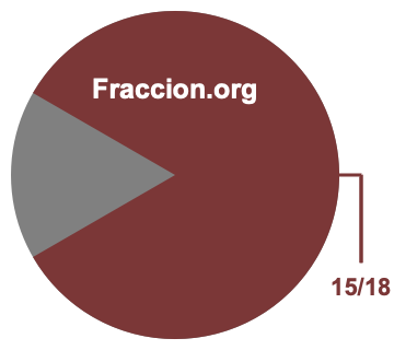 Aquí le mostramos un gráfico circular de 15/18. Para crear un gráfico circular que le muestra cuánto es 15/18, primero dividimos el círculo en cinco partes iguales. Entonces coloreamos 15 de las 18 partes en marrón oscuro. Aquí está el resultado: