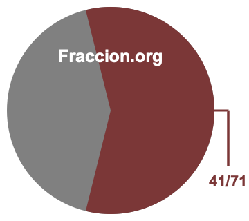 El gráfico circular de 41/71 le muestra cuánto 41/71 es de un todo en el color marrón oscuro. La parte gris del círculo de arriba es 30/71, porque 1 menos 41/71 es igual a 30/71.