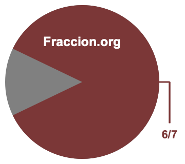 Aquí le mostramos un gráfico circular de 6/7. Para crear un gráfico circular que le muestra cuánto es 6/7, primero dividimos el círculo en cinco partes iguales. Entonces coloreamos 6 de las 7 partes en marrón oscuro. Aquí está el resultado: