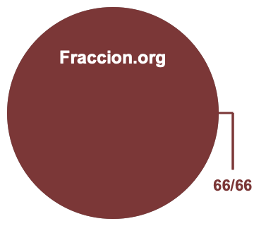 El gráfico circular de 66/66 le muestra cuánto 66/66 es de un todo en el color marrón oscuro. La parte gris del círculo de arriba es 0/66, porque 1 menos 66/66 es igual a 0/66.