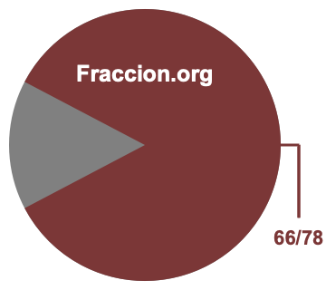 El gráfico circular de 66/78 le muestra cuánto 66/78 es de un todo en el color marrón oscuro. La parte gris del círculo de arriba es 12/78, porque 1 menos 66/78 es igual a 12/78.
