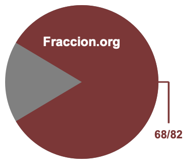 Aquí le mostramos un gráfico circular de 68/82. Para crear un gráfico circular que le muestra cuánto es 68/82, primero dividimos el círculo en cinco partes iguales. Entonces coloreamos 68 de las 82 partes en marrón oscuro. Aquí está el resultado: