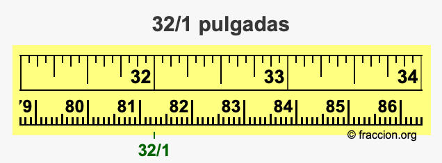 ¿Cómo convertimos 32/1 pulgadas a centímetros (cm)? ¿Cuánto es 32/1 pulgadas en cm? Aquí le mostraremos cómo convertir 32/1 pulgadas a centímetros en forma de fracción, cómo convertir 32/1 pulgadas a centímetros en forma decimal, y también le mostraremos 32/1 pulgadas en una cinta métrica.