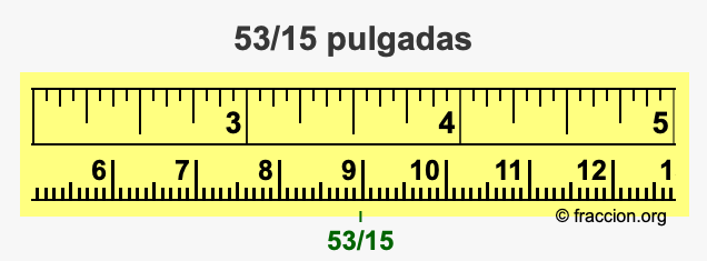 ¿Cómo convertimos 53/15 pulgadas a centímetros (cm)? ¿Cuánto es 53/15 pulgadas en cm? Aquí le mostraremos cómo convertir 53/15 pulgadas a centímetros en forma de fracción, cómo convertir 53/15 pulgadas a centímetros en forma decimal, y también le mostraremos 53/15 pulgadas en una cinta métrica.