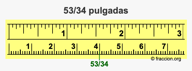 ¿Cómo convertimos 53/34 pulgadas a centímetros (cm)? ¿Cuánto es 53/34 pulgadas en cm? Aquí le mostraremos cómo convertir 53/34 pulgadas a centímetros en forma de fracción, cómo convertir 53/34 pulgadas a centímetros en forma decimal, y también le mostraremos 53/34 pulgadas en una cinta métrica.