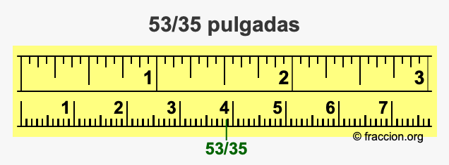 ¿Cómo convertimos 53/35 pulgadas a centímetros (cm)? ¿Cuánto es 53/35 pulgadas en cm? Aquí le mostraremos cómo convertir 53/35 pulgadas a centímetros en forma de fracción, cómo convertir 53/35 pulgadas a centímetros en forma decimal, y también le mostraremos 53/35 pulgadas en una cinta métrica.