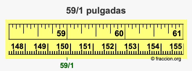 ¿Cómo convertimos 59/1 pulgadas a centímetros (cm)? ¿Cuánto es 59/1 pulgadas en cm? Aquí le mostraremos cómo convertir 59/1 pulgadas a centímetros en forma de fracción, cómo convertir 59/1 pulgadas a centímetros en forma decimal, y también le mostraremos 59/1 pulgadas en una cinta métrica.