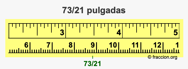 ¿Cómo convertimos 73/21 pulgadas a centímetros (cm)? ¿Cuánto es 73/21 pulgadas en cm? Aquí le mostraremos cómo convertir 73/21 pulgadas a centímetros en forma de fracción, cómo convertir 73/21 pulgadas a centímetros en forma decimal, y también le mostraremos 73/21 pulgadas en una cinta métrica.