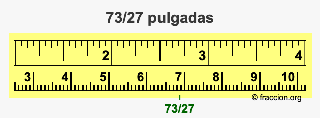 ¿Cómo convertimos 73/27 pulgadas a centímetros (cm)? ¿Cuánto es 73/27 pulgadas en cm? Aquí le mostraremos cómo convertir 73/27 pulgadas a centímetros en forma de fracción, cómo convertir 73/27 pulgadas a centímetros en forma decimal, y también le mostraremos 73/27 pulgadas en una cinta métrica.
