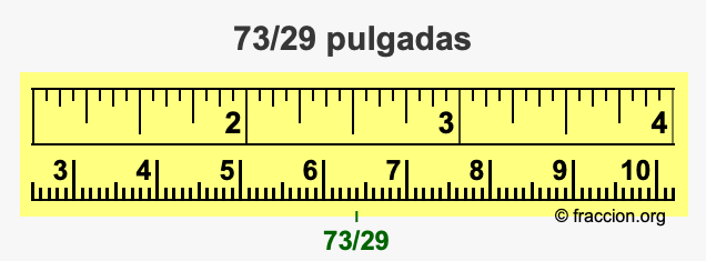 ¿Cómo convertimos 73/29 pulgadas a centímetros (cm)? ¿Cuánto es 73/29 pulgadas en cm? Aquí le mostraremos cómo convertir 73/29 pulgadas a centímetros en forma de fracción, cómo convertir 73/29 pulgadas a centímetros en forma decimal, y también le mostraremos 73/29 pulgadas en una cinta métrica.