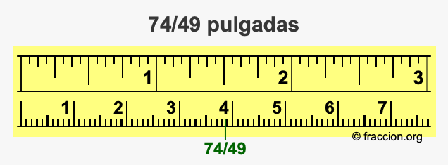 ¿Cómo convertimos 74/49 pulgadas a centímetros (cm)? ¿Cuánto es 74/49 pulgadas en cm? Aquí le mostraremos cómo convertir 74/49 pulgadas a centímetros en forma de fracción, cómo convertir 74/49 pulgadas a centímetros en forma decimal, y también le mostraremos 74/49 pulgadas en una cinta métrica.