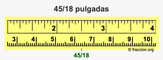 ¿Cómo convertimos 45/18 pulgadas a milímetros (mm)? ¿Cuánto es 45/18 pulgadas en mm? Aquí le mostraremos cómo convertir 45/18 pulgadas a milímetros en forma de fracción, cómo convertir 45/18 pulgadas a milímetros en forma decimal, y también le mostraremos 45/18 pulgadas en una cinta métrica.