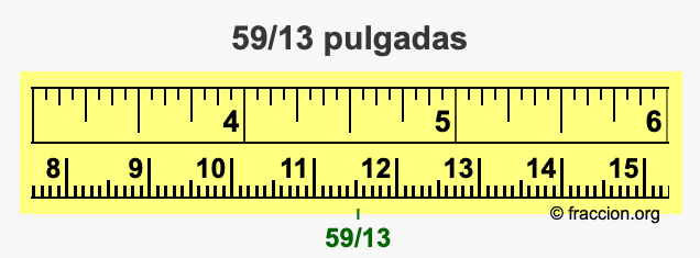 ¿Cómo convertimos 59/13 pulgadas a milímetros (mm)? ¿Cuánto es 59/13 pulgadas en mm? Aquí le mostraremos cómo convertir 59/13 pulgadas a milímetros en forma de fracción, cómo convertir 59/13 pulgadas a milímetros en forma decimal, y también le mostraremos 59/13 pulgadas en una cinta métrica.