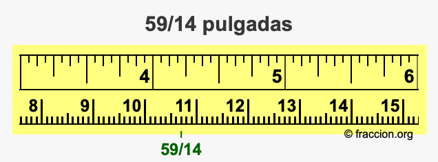¿Cómo convertimos 59/14 pulgadas a milímetros (mm)? ¿Cuánto es 59/14 pulgadas en mm? Aquí le mostraremos cómo convertir 59/14 pulgadas a milímetros en forma de fracción, cómo convertir 59/14 pulgadas a milímetros en forma decimal, y también le mostraremos 59/14 pulgadas en una cinta métrica.